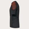 Worn under your jersey, this shirt delivers unparalleled freedom of movement and breathability as well as certified levels of performance above and beyond the requirements of the EN 1621-1:2012 (level 1) and UKCA standards. The moisture-wicking stretch mesh body fabric keeps you feeling fresh and dry as you push yourself to the limit while the D30 polymer is activated by your body temperature to conform to your physique. EVA padding around the ribs and D3O ghost™ chest, back and shoulder pads for added protection. Easy to pull on and off thanks to the lateral zip opening.